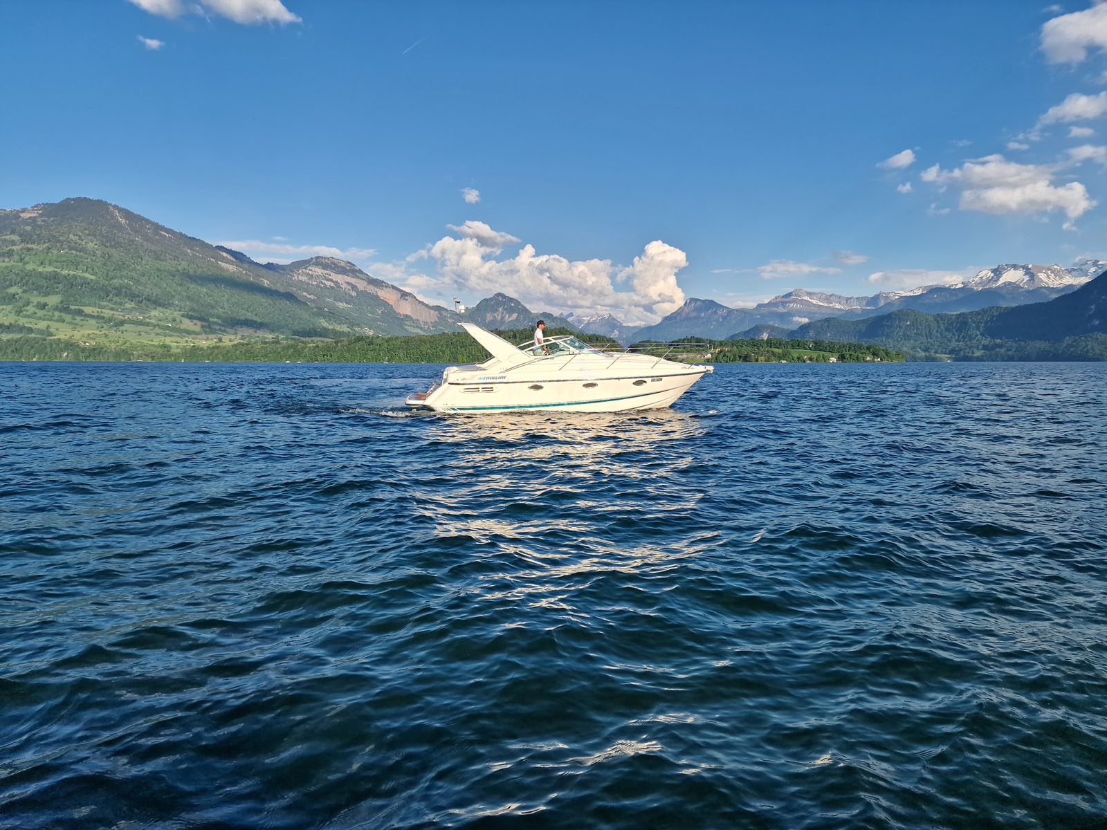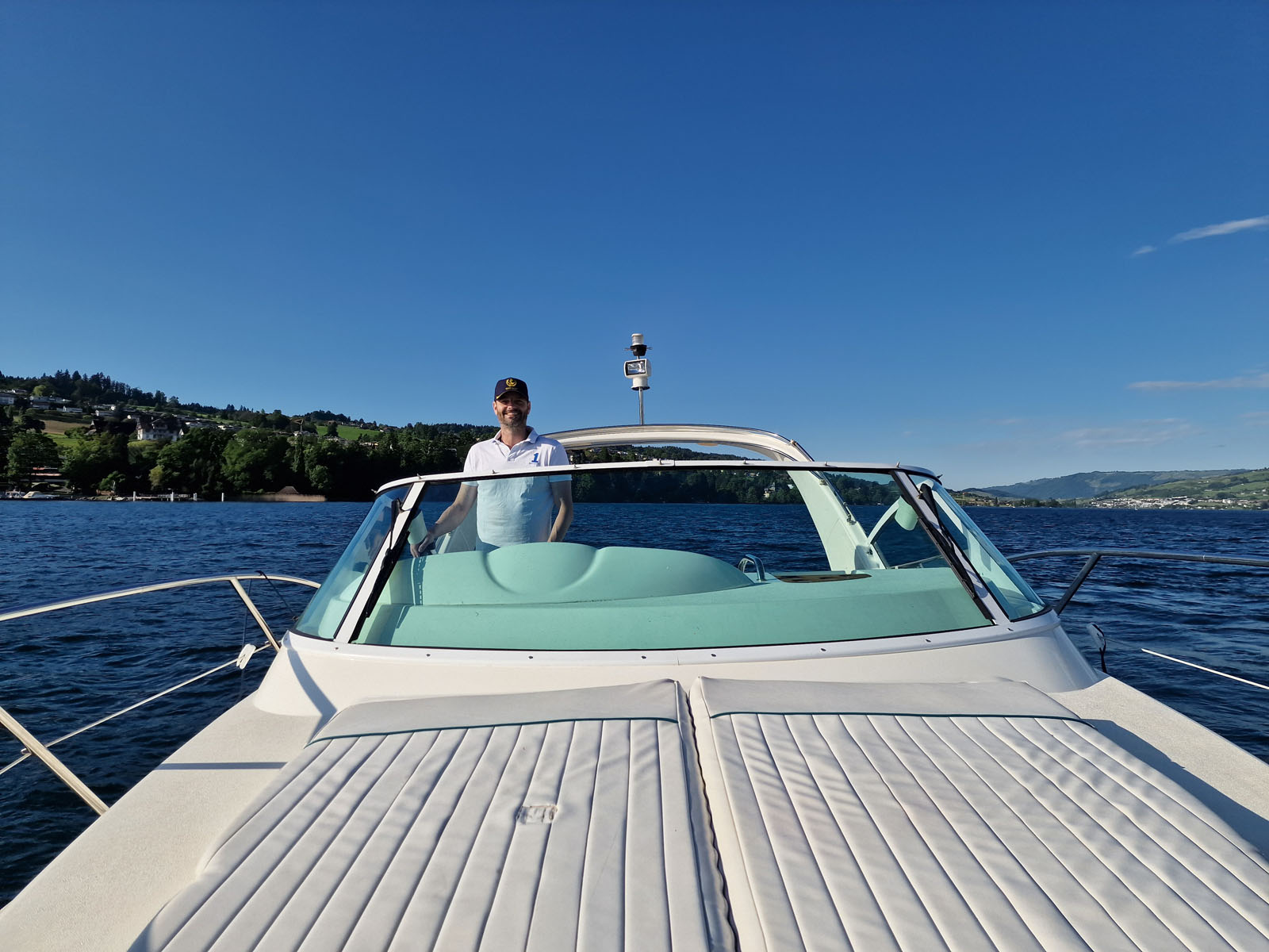 Dieses Video zeigt einen authentischen Blick vom Bug der Fairline Targa 29 aus – wie sich das Wasser bricht, wie die Sonne glitzert und wie sich die Fahrt durch die weite, ruhige Landschaft des Vierwaldstättersees anfühlt. Ideal, um einen ersten Eindruck von Ihrer zukünftigen Bootstour mit Lakeview-Tours zu bekommen: